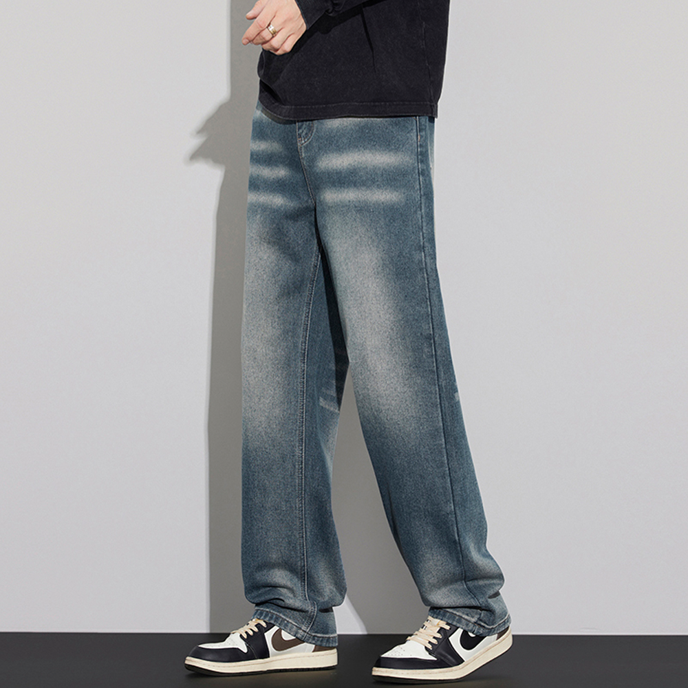 Loose straight-leg jeans with a washed, distressed finish for vintage character—perfect for autumn or casual street looks. Wash inside-out cold; line dry to preserve color and distressing. Pair with hoodies, tees, or boots for rugged everyday style.